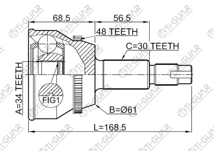 ШРУС наружный /правый /левый /TI-GUAR для Toyota Harrier 2003-2006 GSU30W GSU31W 2GRFE; 34*61*30; TG-95101Z48; (TO-101A48) 434100E020 434200E020 434200E021